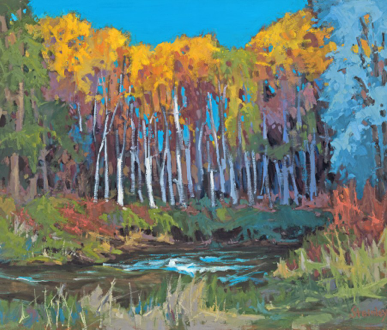 All of my paintings are oil. Most are landscapes, but I do some figurative paintings and an occasional still life. For the landscapes I divide my time about equally between South Dakota’s West and East River scenery and towns. I also occasionally wander further East or West for cityscapes, ocean scenes, and other subject matter not available around here.